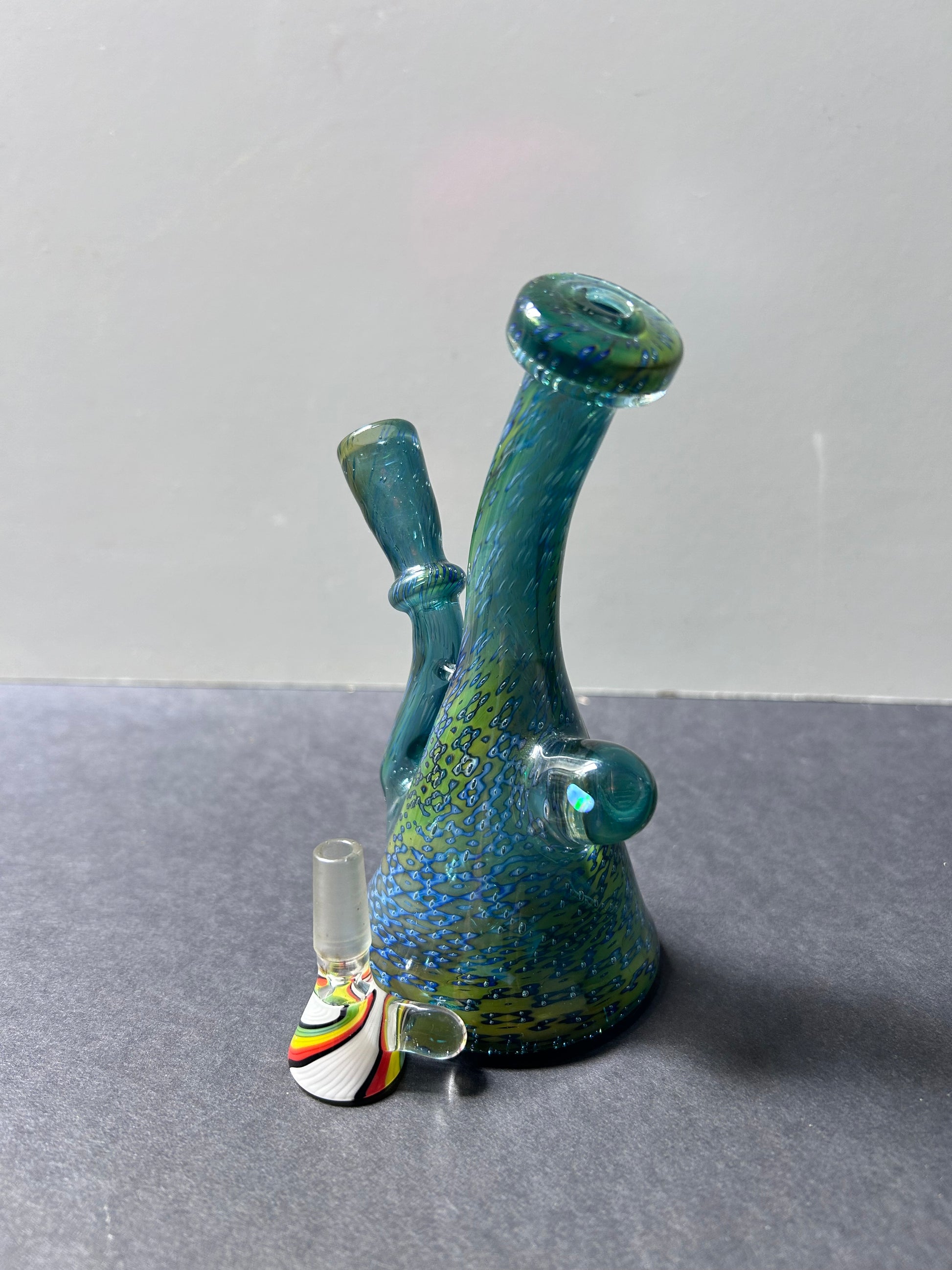 Cheese graded fumes/opal/rasta color swirl bowl 10mm
